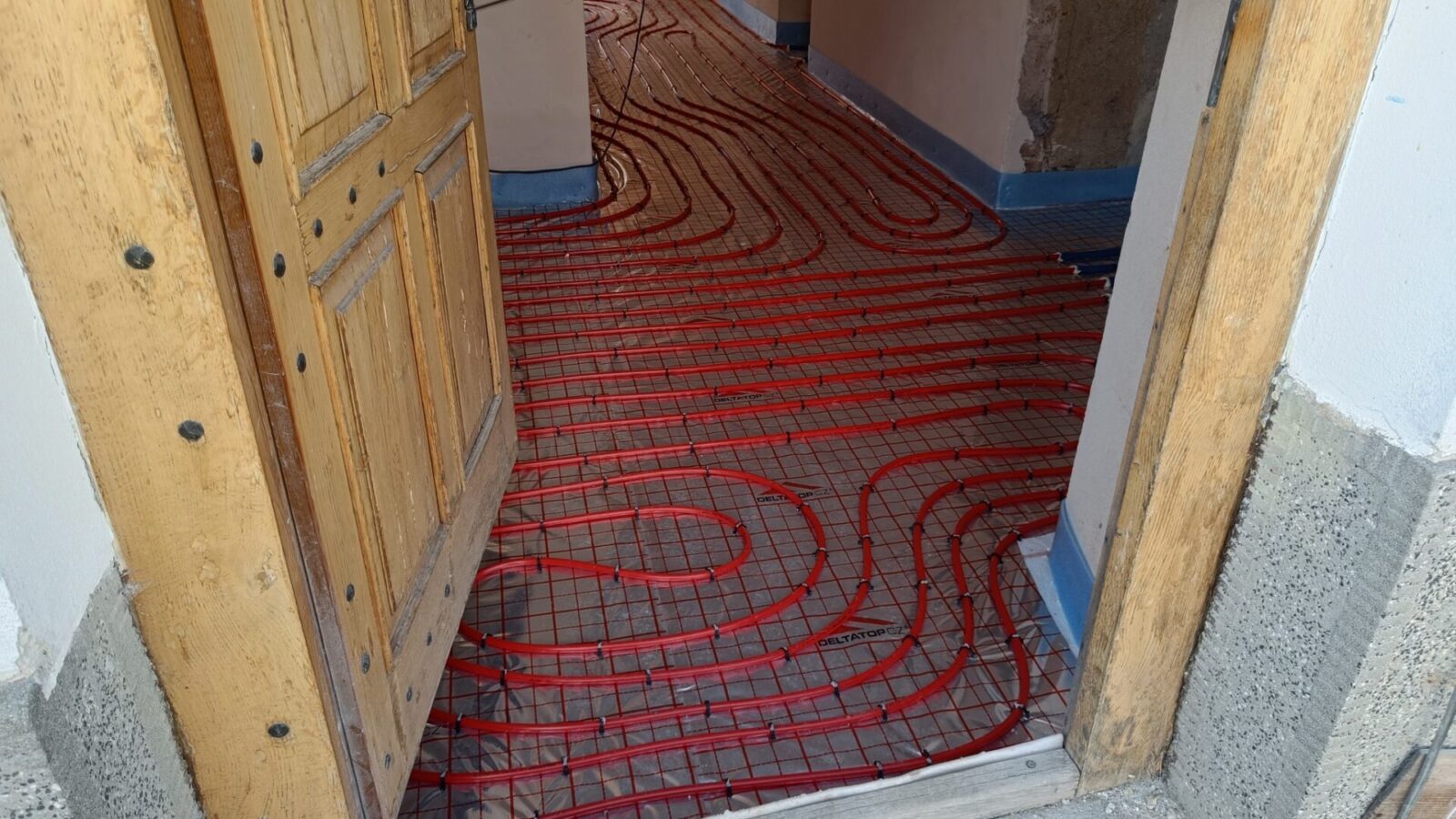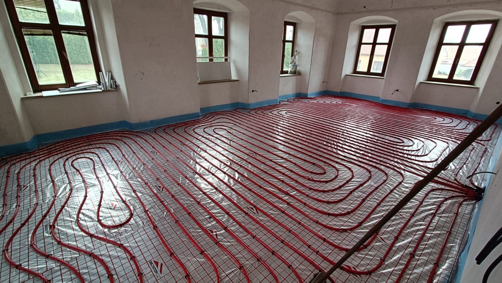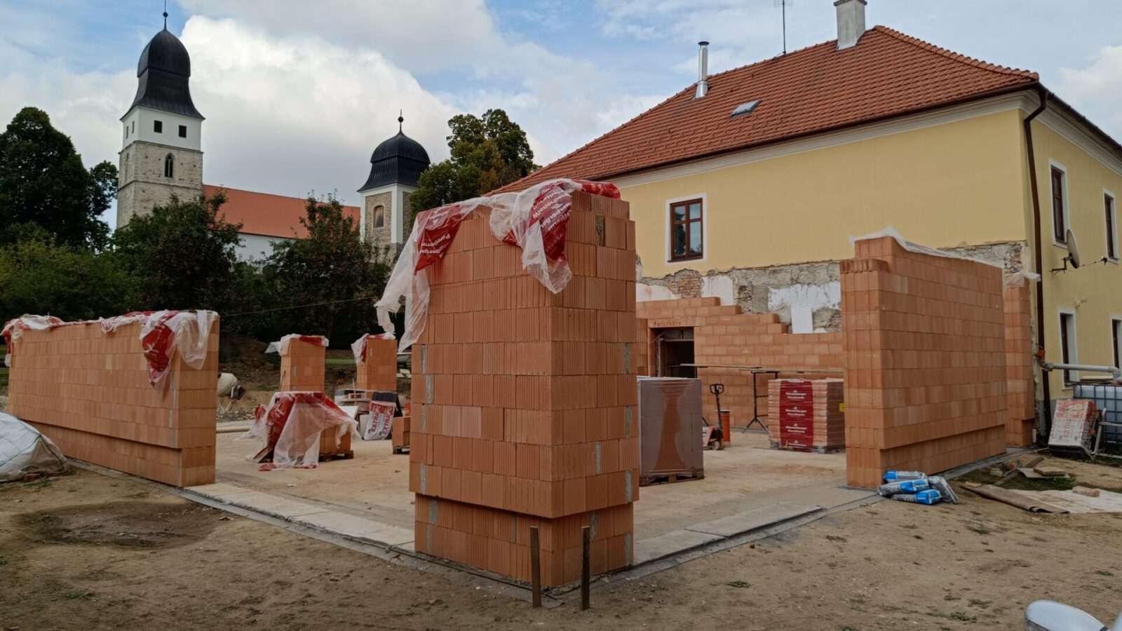 Ani týden neuběhl - a zdivo farního sálu je již postavené. Na faře je instalováno potrubí podlahového topení, které bude v pondělí zalito betonovou směsí.