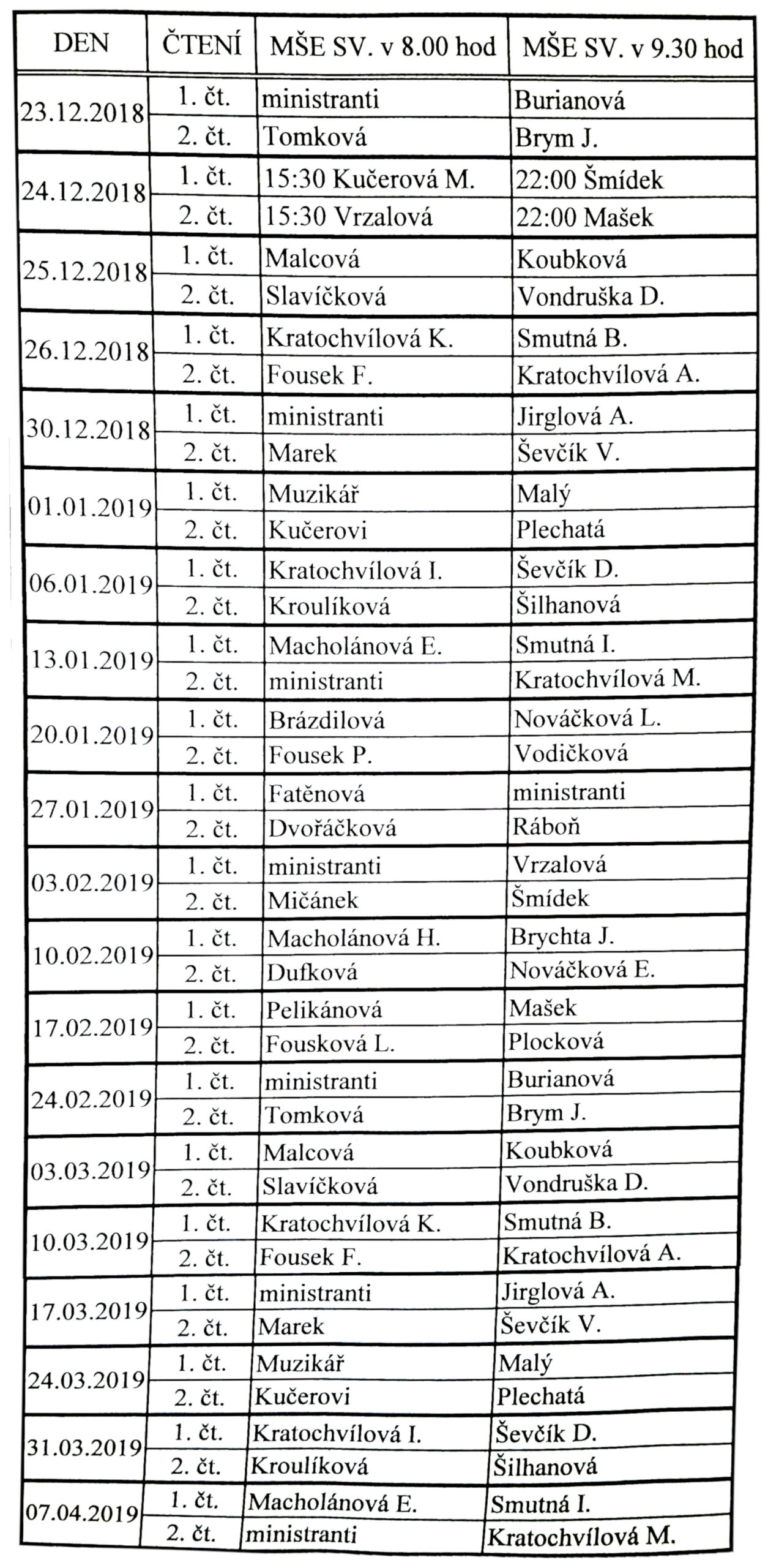 LEKTORSKÁ SLUŽBA leden – duben 2019