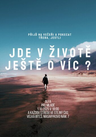 Ve Velké Bíteši bude od 1. října probíhat Alfa kurz pro mladé, jedná se o neformální setkání, kde se společně diskutuje o tématech víry, jako je třeba Jde v životě o něco víc? Kdo je Ježíš? Uzdravuje Bůh i dnes ? A co Církev?