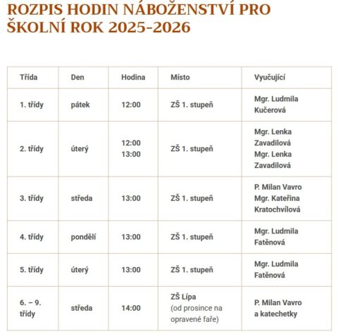 Rozvrh a přihlášky do náboženství 2025/2026