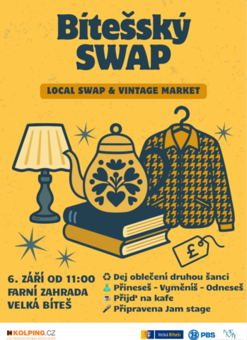 6. září 2025 od 11:00 na farní zahradě ve Velké Bíteši. Dej oblečení druhou šanci. Přineseš – Vyměníš – Odneseš. Přijď na kafe. Připravena Jam stage.