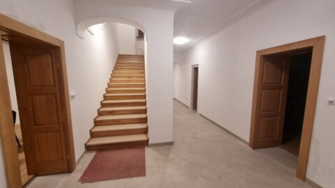 Po otevření opravené fary se můžeme opět podívat do farního sálu. Práce jdou velmi rychle. Po dokončení elektroinstalace, podlahového topení a jeho zalití anhydritem, má nyní sál kompletně s ostatními místnostmi nové omítky.