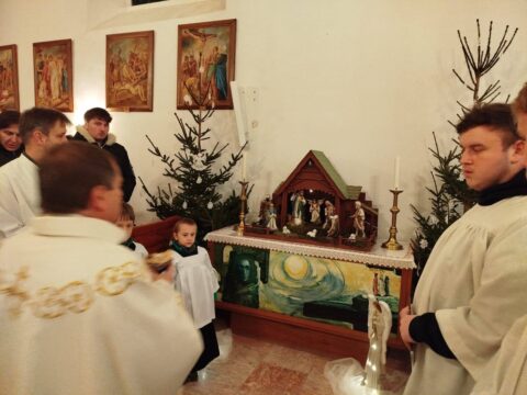 V neděli 7. prosince jsme se po každé mši svaté vydali před faru, kde o. Milan požehnal faru, kterou si přítomní mohli prohlédnout.