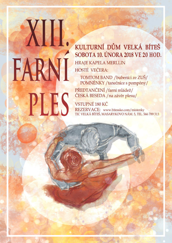 V sobotu 10. února 2018 roztančí kulturní dům tradiční ples naší farnosti. Zahraje na něm kapela Merllin a představí se hosté tentokráte téměř výlučně zdejší.